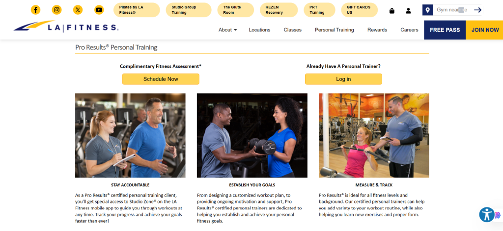 Personal training sessions are not included in base memberships. They range from $50 to $100 per hour, and packages can total $500 or more.