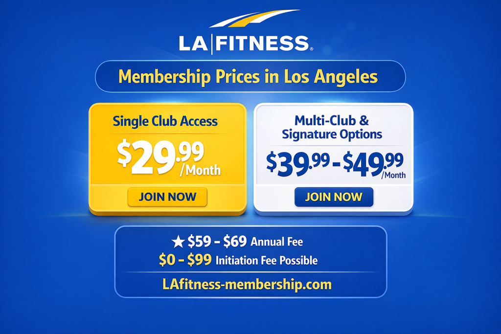 ★ LA Fitness membership prices in Los Angeles range from $29.99 monthly for single-club access to $39.99-$49.99 for multi-club or signature options.